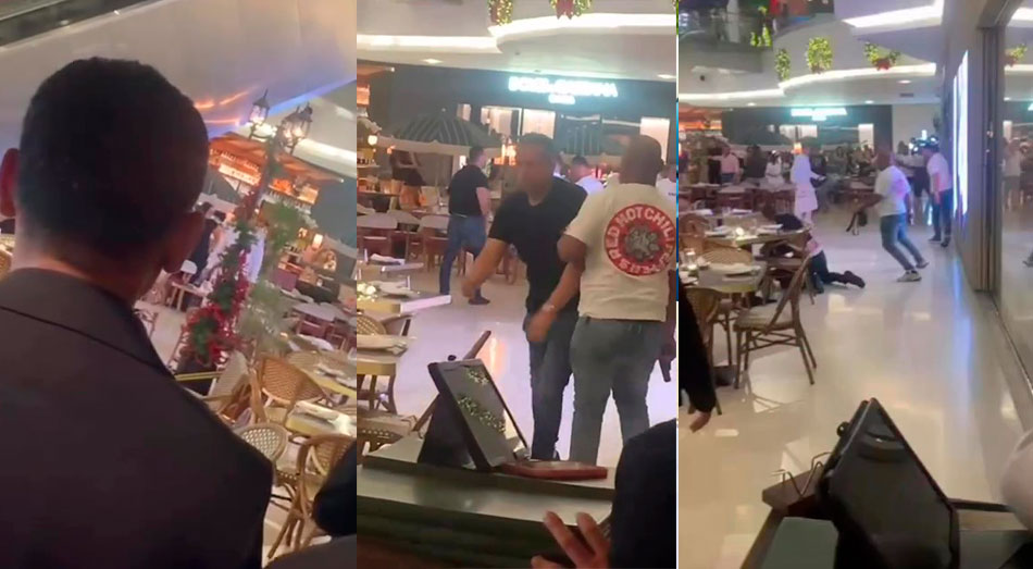 Santo Domingo.– La noche de este domingo se registró un momento de tensión en el centro comercial Blue Mall, luego de que se produjera una pelea entre dos hombres en un área frecuentada por familias y clientes de restaurantes.